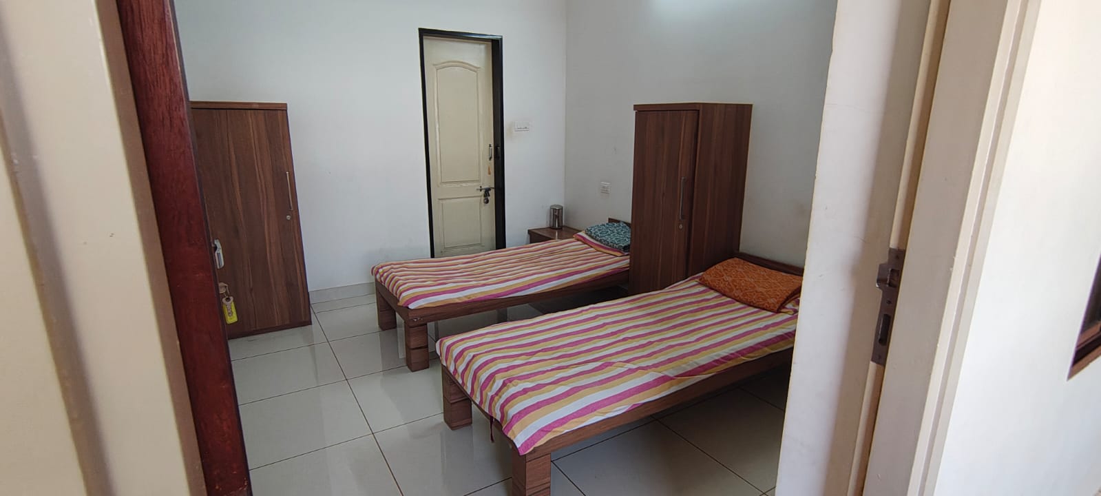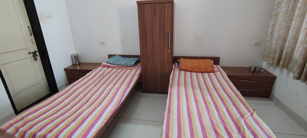 Jalaram Mandir in Mangalore is delighted to offer accommodation facilities for devotees visiting the temple or others visiting the city. Our rooms are thoughtfully designed to provide a clean, comfortable, and peaceful environment, ensuring a pleasant stay during your spiritual journey. From single and double bedrooms to larger rooms accommodating up to five devotees, we have options to suit individual needs and group visits. These accommodations are available to enhance your devotional experience and make your stay more convenient. For bookings or inquiries, please contact us in advance. We look forward to welcoming you to our sacred premises.